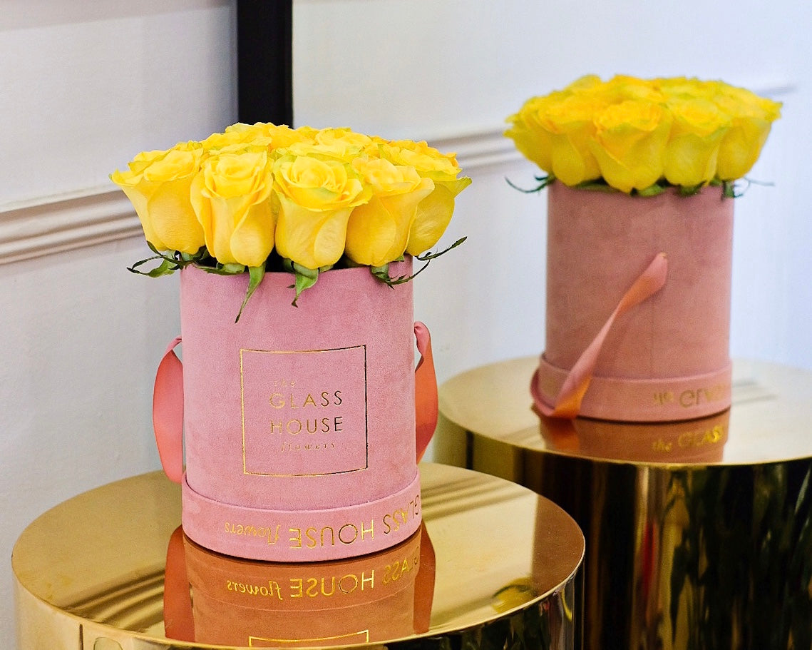 Timeless Ecuadorian Roses in our luxurious boxes that are made of suede material. Create your own unique arrangement with a variety of colors to choose from!