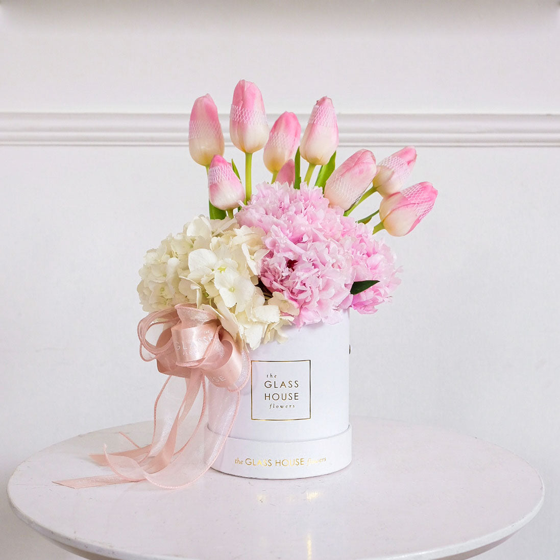 Peonies, Tulips & Hydrangeas - Petite Round Box