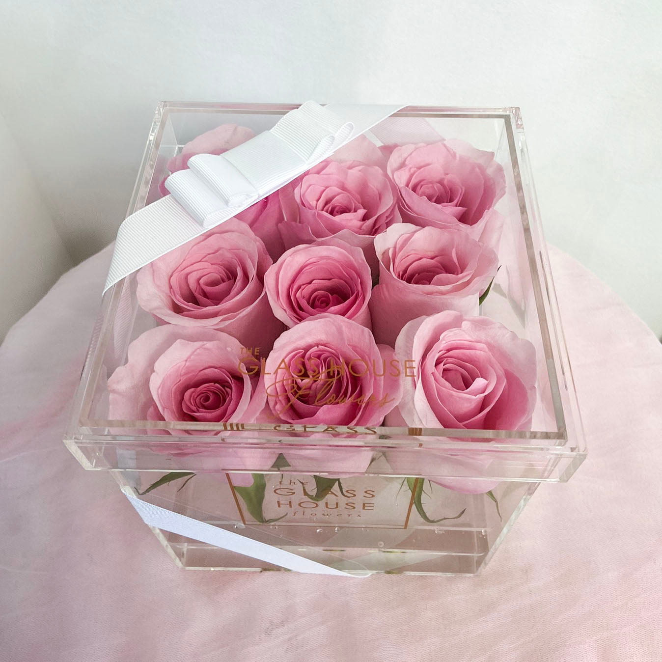 9 fresh Ecuadorian roses in our signature acrylic box.